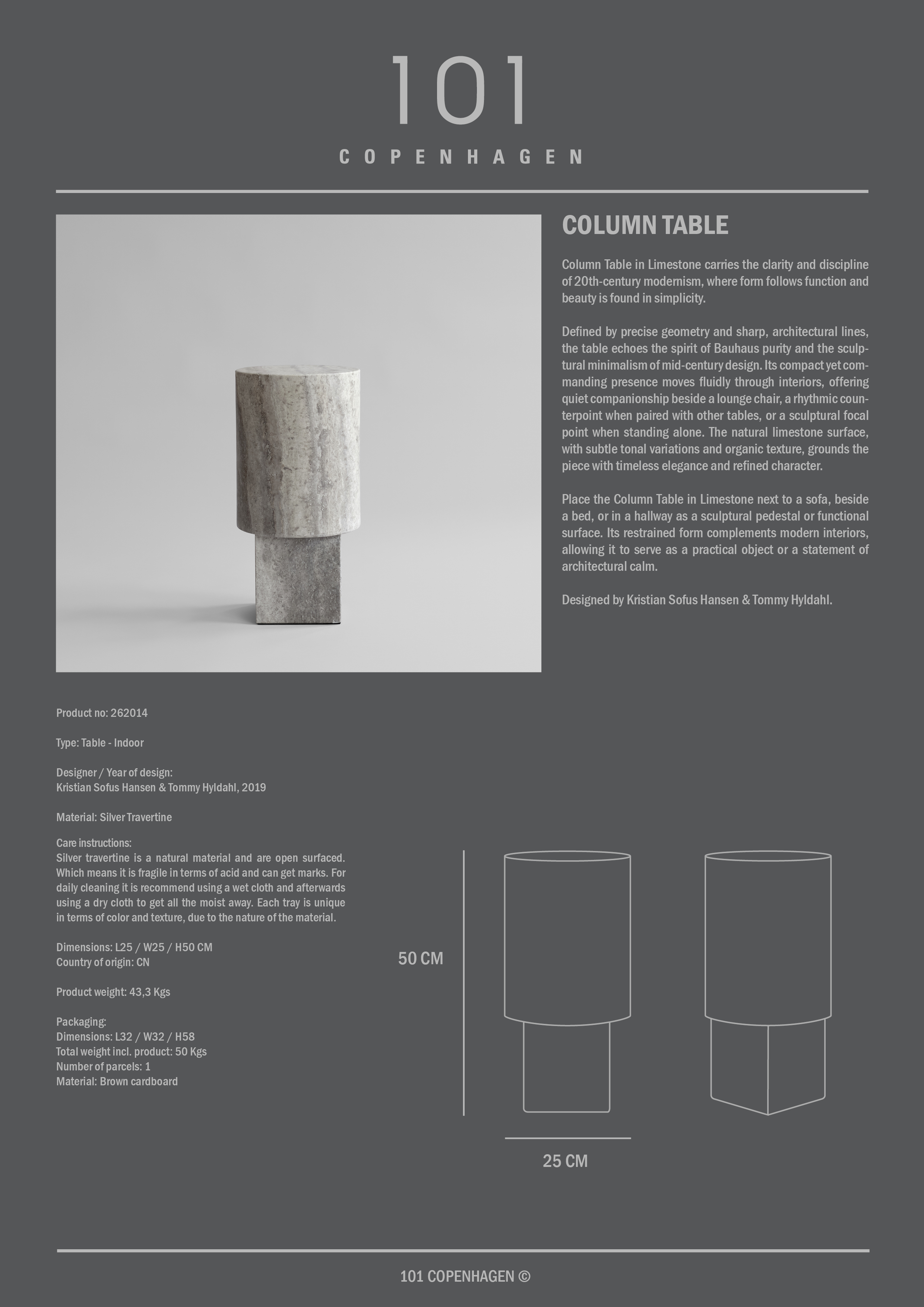 101 Copenhagen Column Side Table , Srebrny trawertyn 4.169 zł Wyrównujemy ceny na żywo Dostawa w 30–40 dni KupWięcej informacji na temat produktu Darmowa wysyłka przy zamówieniach powyżej 600 zł Nie obejmuje dużych mebli i innych wybranych produktów. 365-dniowe prawo do zwrotu Autoryzowany dystrybutor