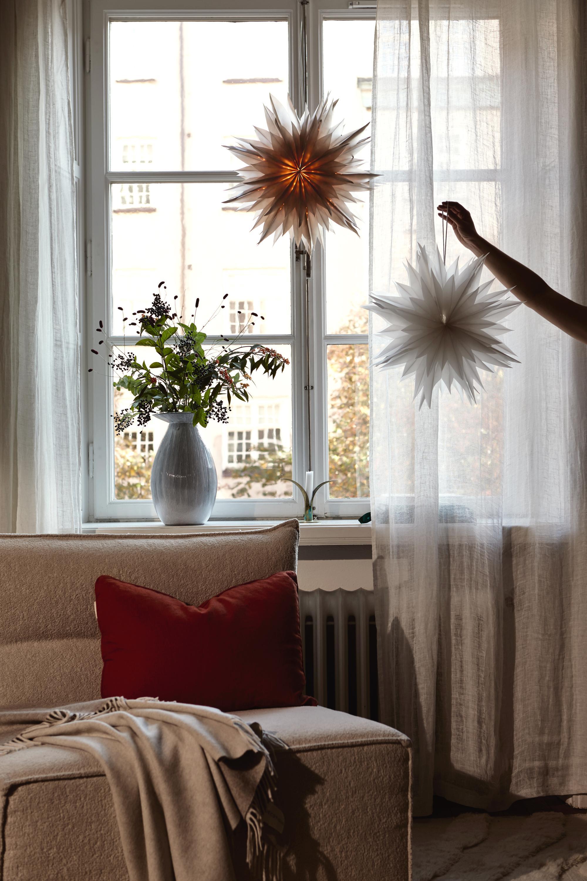 Nova to piękna, trójwymiarowa papierowa gwiazda wykonana z wielowarstwowego, półprzezroczystego papieru maślanego, która tworzy ciepły i elegancki wzór świetlny. Warstwowa konstrukcja nadaje gwieździe wyjątkowej głębi, dzięki czemu jest to oczywisty wybór zarówno na okres Bożego Narodzenia, jak i na zimową porę.
