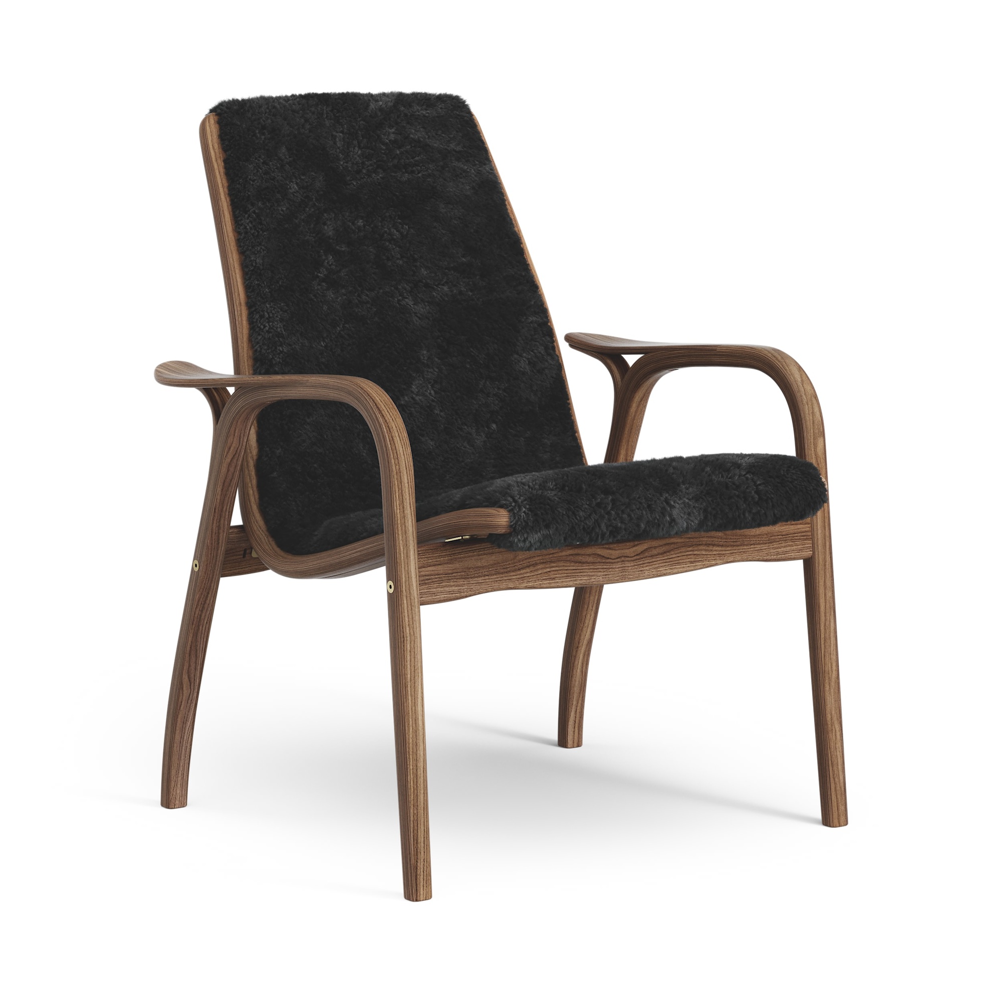 Fotel laminowany Swedese, lakierowany Orzech włoski/ Czarny/ skóra owcza