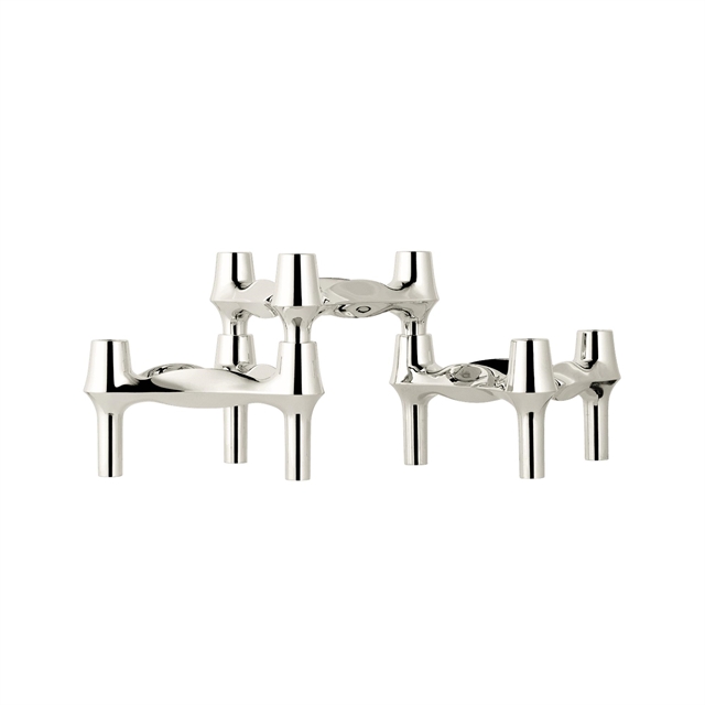 Świecznik STOFF Nagel BMF to kultowy i kolekcjonerski przedmiot o charakterystycznej, trójnożnej i układanej w stos konstrukcji, która zachęca do kreatywnej ekspresji poprzez niezliczone rzeźbiarskie aranżacje, w których każdy świecznik funkcjonuje jako część większej całości i stanowi równowagę między funkcjonalnym przedmiotem oświetleniowym a artystyczną rzeźbą. Dzięki temu projekt ten idealnie nadaje się do tworzenia osobistych i architektonicznych aranżacji, które mogą rozwijać się z czasem.